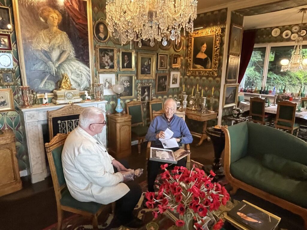Wir sitzen auf Stühlen, die mit Stoffen bezogen sind, die noch von Joan Sutherland bestickt wurden. Sie stickte so gern in ihrer Freizeit! Wir plaudern durcheinander, auf Englisch, Schwizerdütsch, Hochdeutsch, Italienisch. Mr. Bonynge spricht mit uns selbst nur Englisch, aber er versteht alles. Er erzählt uns von den vielen legendären Sängerinnen und Sängern, die er während seines Lebens begleitet hat, selten leicht skeptisch, überwiegend wohlwollend: „She was a really good singer …“ Er empfiehlt dem Festival ‚Rossini in Wildbad‘ unbekannte, seit langem nicht aufgeführte Opern von Michael Balfe, auch ein sträflich unterschätzter Musikdramatiker.