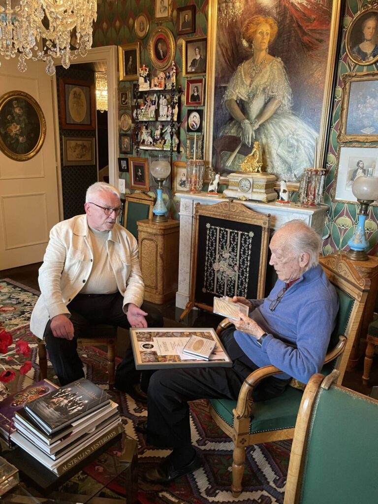 Am 24. September 2025 durfte eine Delegation der Giacomo-Meyerbeer-Gesellschaft dem großen Dirigenten Richard Bonynge persönlich die Urkunde zur Ehrenmitgliedschaft überreichen. Unser Vorstandsmitglied Dieter Riehl hat uns folgenden Bericht und ein paar Bilder zukommen lassen – eine wunderbare Erinnerung an einen lebendigen, musikalischen Nachmittag in der Romandie!